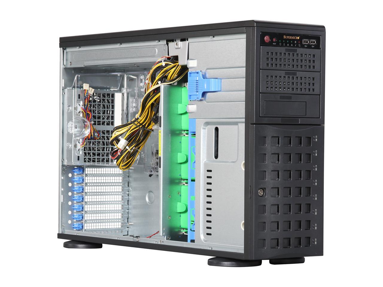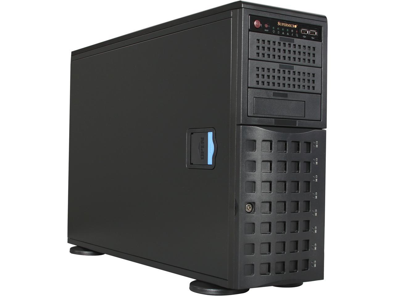 SUPERMICRO CSE-745TQ-920B Black 4U Pedestal Server Case 920W 80Plus Platinum 2x 5.25" Peripheral Drive Bay 1x 5.25" Bay that fits 3.5" bay devices External 5.25" Drive Bays