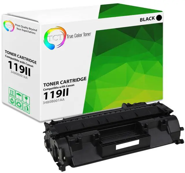 TCT offers quality Canon 119II 3480B001AA High Yield compatible replacement cartridges that fit effortlessly into your printer. You will find crisp, clear prints with consistently dark tones and sharp images in every single print job. Get professional quality prints every time and save a bundle with True Color Toners high quality printing supplies!