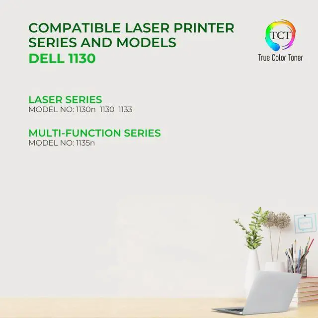 TCT offers quality Dell 1130 330-9523 compatible replacement cartridges that fit effortlessly into your printer. You will find crisp, clear prints with consistently dark tones and sharp images in every single print job. Get professional quality prints every time and save a bundle with True Color Toners high quality printing supplies!
