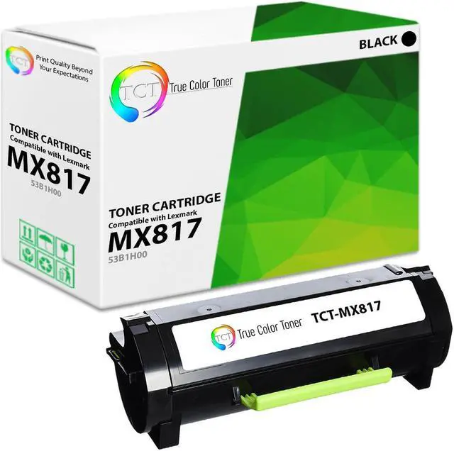 TCT offers quality Lexmark MX817 53B1H00 High Yield remanufactured replacement cartridges that fit effortlessly into your printer. You will find crisp, clear prints with consistently dark tones and sharp images in every single print job. Get professional quality prints every time and save a bundle with True Color Toners high quality printing supplies!