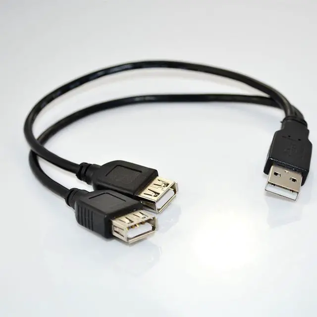 Features: USB A male connector on one end and a pair of USB A female connectors on the other Serves as a 2-port USB hub, The cable can be used as a passive hub or active Fully shielded cable with durable, yet flexible jacket
