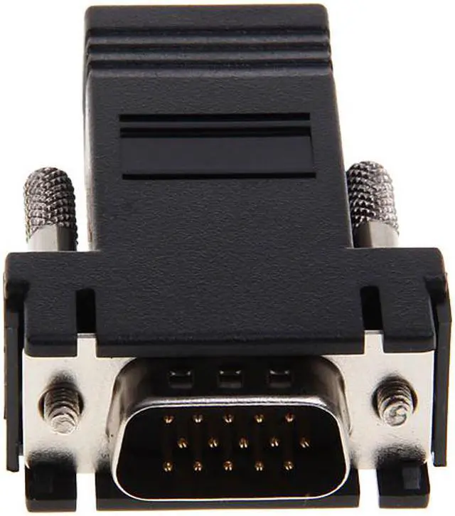 Features: Brand new and high quality. VGA extender over CAT5/CAT6/RJ45 cable (cable not included). This adapter will allow you to connect your PC, laptop, DVR, Media Center, or game console VGA video port to TV, projector, monitor with available VGA input for ultimate multimedia experience. A perfect solution for your media center PC to your HDTV. Allow transmitting signal between VGA video ports for distances up to 66ft (approximately 20 meters) over CAT5, CAT6 ethernet cable (cable not included). The distance and picture quality depends on length of the cable, and the resolution that you'd like to transmit. We recommend you use CAT6 or shield CAT5 for the best performance. For best results please try to stay away from major power lines fluorescent and neon lights. ( 12 inches / 0.3 meter).