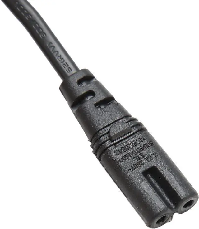 IEC C14 3 pin Male Plug to Figure 8 C7 Plug Power Adapter Cable Standard Molded IEC 320 C14 Socket to IEC C7 Plug AC Power cable Ideal for converting a IEC C13 (kettle lead) type connection into a C7 Figure of eight plug. UL Approved IEC 320 C14 to IEC C7 AC cable. Molded type, PVC material 10A/110V-240V AC Power Cord, C14 to C7, 'Approvals: UL, RoHSSupply End - IEC-60320-C14Equipment End - IEC-60320-C7Wire Type C14 IEC Female connection C7 Figure of Eight Male Plug 2 X 0.75 mm2 Not to be used to convert from a figure of eight source to a IEC device.