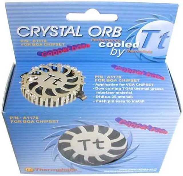 | Features | Application for Application for GeForce 2 Series, GeForce 3 Series, GeForce 4 MX Series Video Card & Chipset Dow corning T-340 thermal grease interface material 54dia.x 25 mm tall Push pin easy to install |