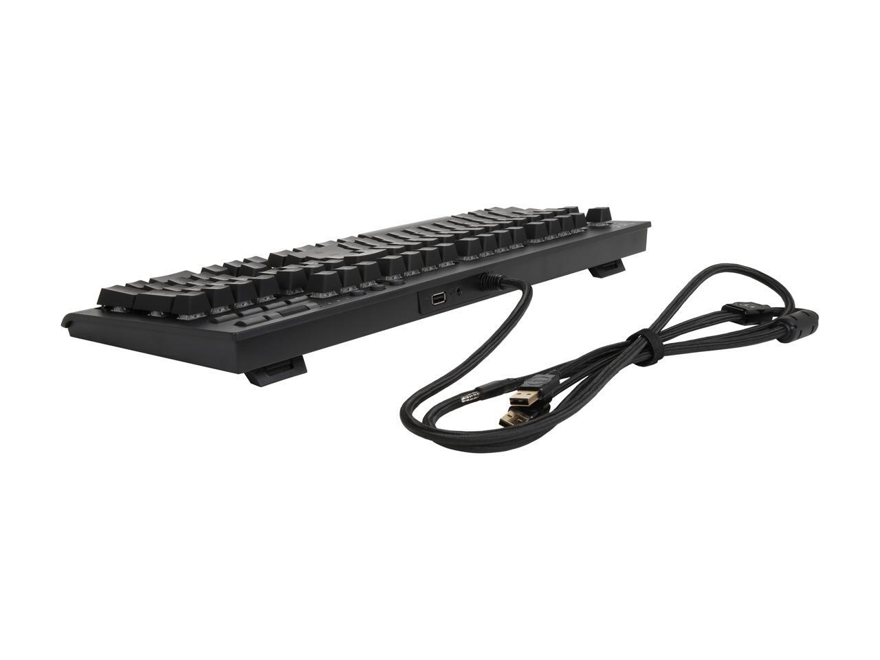Genuine Cherry MX Blue Switches with 50 million keystrokes lifespan, features tactile feedbacks with audible clicks suitable for both gaming and typing
