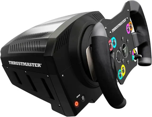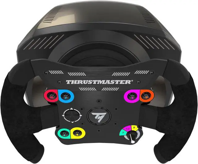 With its open design, the Thrustmaster gaming wheel features an added degree of realism. Six central buttons are easy to access to allow you to control the game and car settings comfortably. Its three-position rotary selector has a push button to customize your settings even more. The high-quality fabrication includes suede covering on the outer grips for superior comfort and brushed aluminum paddle shifters.