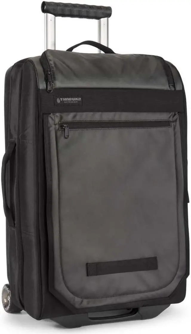 A favorite among globetrotting Timbuk2 fans, the Copilot is lightweight and easy to pack. Its sleek new styling works downtown or way way out of town and its bike-inspired handle system and broad-base skateboard wheels yield a smooth roll. Its clamshell structure makes it easy to pack and repack, while always providing the opportunity to quarantine things as needed. The Copilot features multiple reinforced grab straps for an easy heave-ho into overhead bins, and its expandable top stash pocket is designed for easy access in said bins. Light, organized, and subtly chic, the Copilot is ready to board.