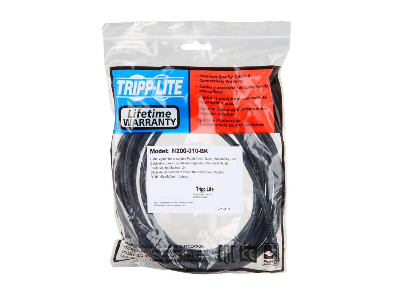 Tripp Lite Cat6 Gigabit Molded Patch Cable, 10 ft. RJ45 (M/M), 550MHz 24 AWG Black 10' (N200-010-BK)