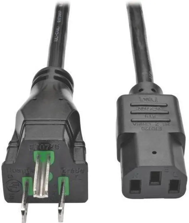 The P006-010-HG10 Hospital-Grade Computer Power Cord features a C13 plug on one end and a NEMA 5-15P-HG plug on the other, allowing you to connect your computer or peripheral to a hospital-grade AC power outlet. It's tested to ANSI/UL 62 and 817, as well as CAN/CSA C22.2 no. 21 and 49 standards, ensuring it's a safe, reliable power solution for hospital environments. The C13 plug connects to computers, printers, scanners, monitors and other electronic devices with a three-pin C14 port. This 10-foot 125V/10A cord features 18 AWG, a flexible SJT jacket and fully molded ends for optimum performance.