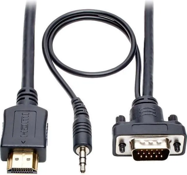 Send High-Definition HDMI Audio/Video Signals to a VGA Display Connects HDMI source to a VGA monitor, projector or TV Ideal for displaying video on large monitor or digital sign Low-profile HD15 connector fits neatly into tight spaces Attached 3.5 mm plug allows connection of compatible mini stereo speakers Plug-and-play-no software or drivers necessary
