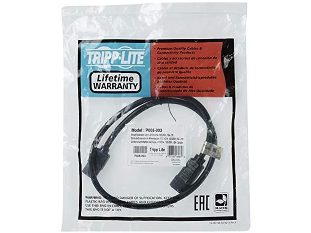 Tripp Lite Heavy-Duty Power Extension Cord, 15A, 14AWG (IEC-320-C14 to IEC-320-C13), 3-ft