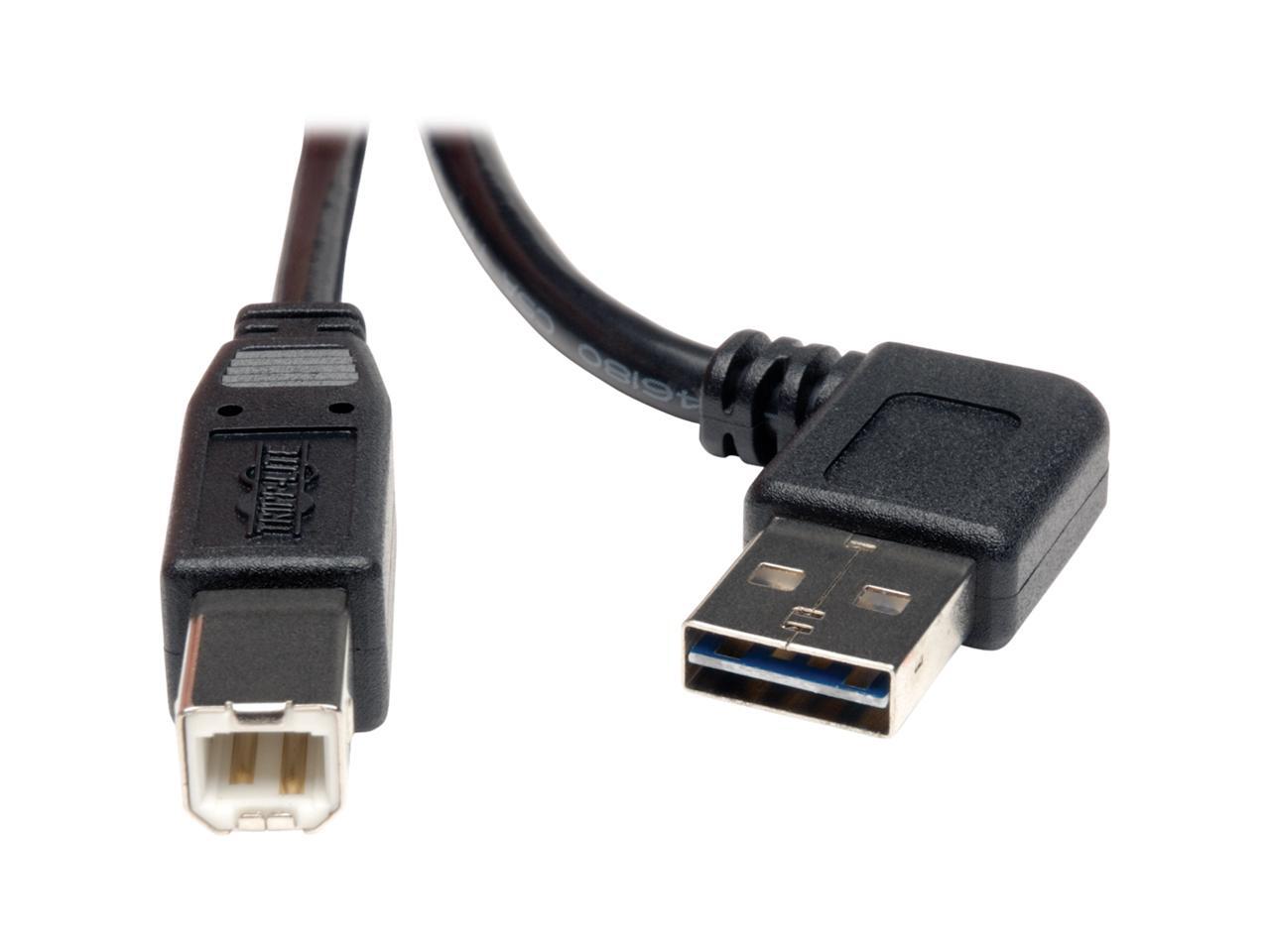 Tripp Lite Universal Reversible USB 2.0 Right Angle A-Male to B-Male Device Cable - 3ft