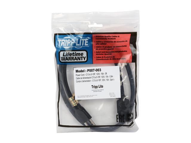 Tripp Lite Model P007-003 3 ft. Heavy-Duty Computer Power Cord, 14AWG 15A (NEMA 5-15P to IEC-320-C13)