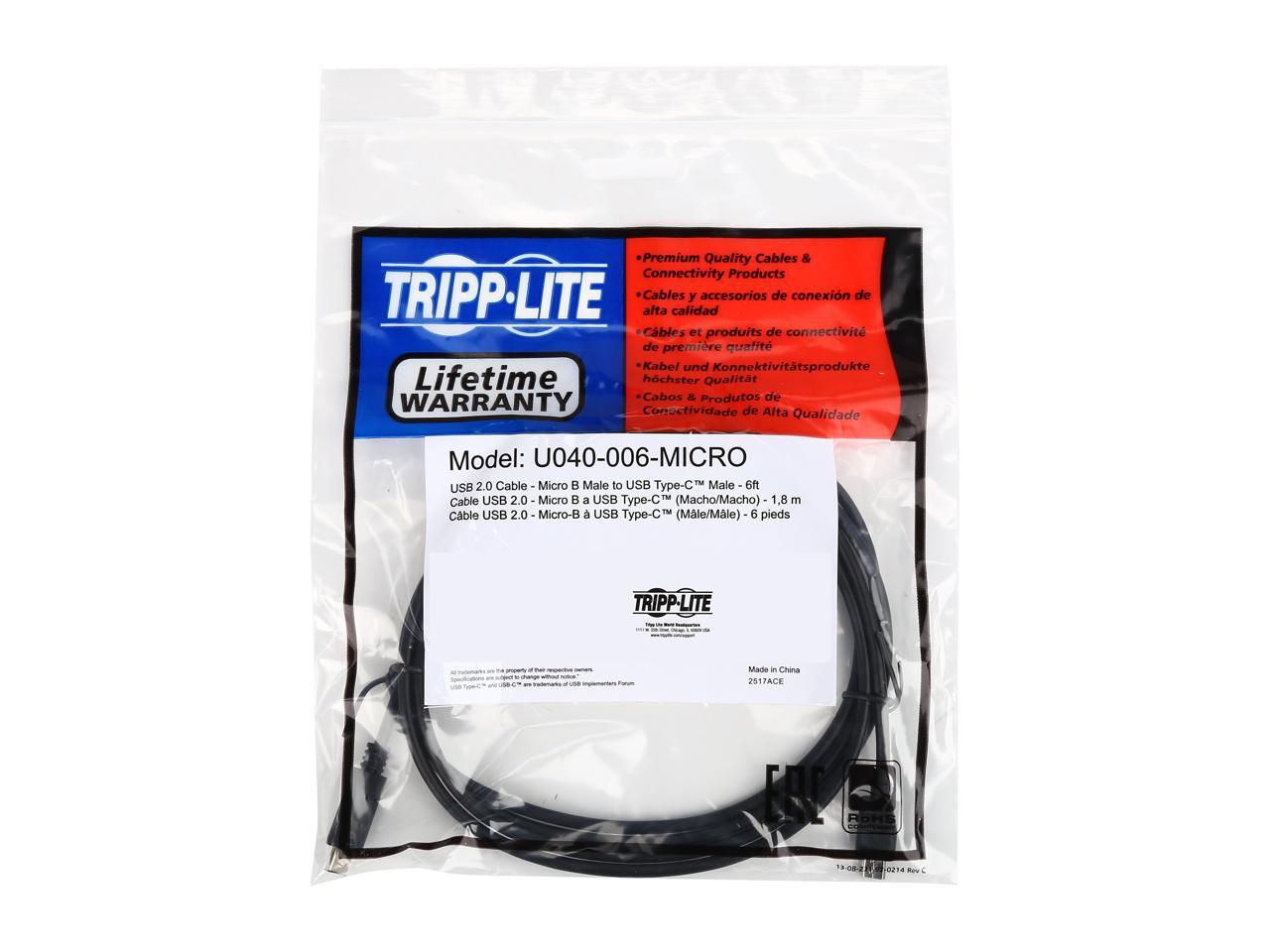 Tripp Lite U040-006-MICRO 6 ft. Black USB 2.0 Hi-Speed Cable (Micro-B Male to USB Type-C Male)