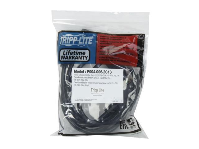 Tripp Lite Y Splitter Computer Power Extension Cord, 10A, 18AWG (IEC-320-C14 to 2x IEC-320-C13), 6-ft. (P004-006-2C13)