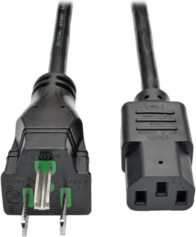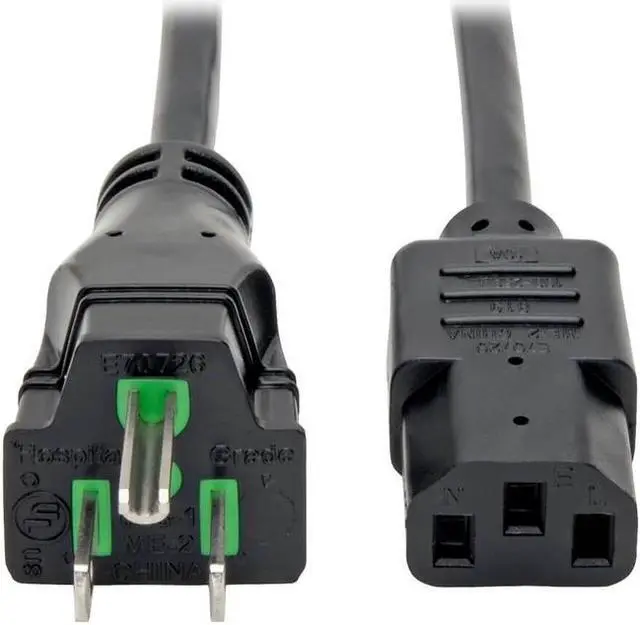 Tripp Lite Hospital-Grade Coiled Computer Power Cord, 10A, 18 AWG (NEMA 5-15P to IEC-320-C13), 8 ft. (P06-C08-HG10)