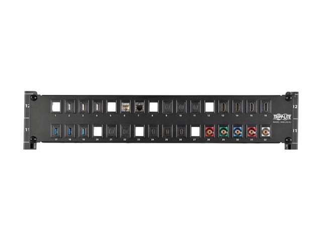 Tripp Lite 32-Port 2U Rack-Mount Unshielded Blank Keystone/Multimedia Patch Panel, RJ45 Ethernet, USB, HDMI, Cat5e/6 (N062-032-KJ)