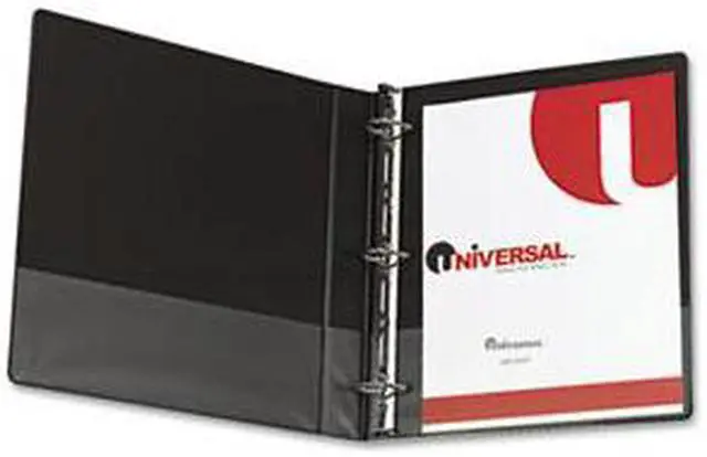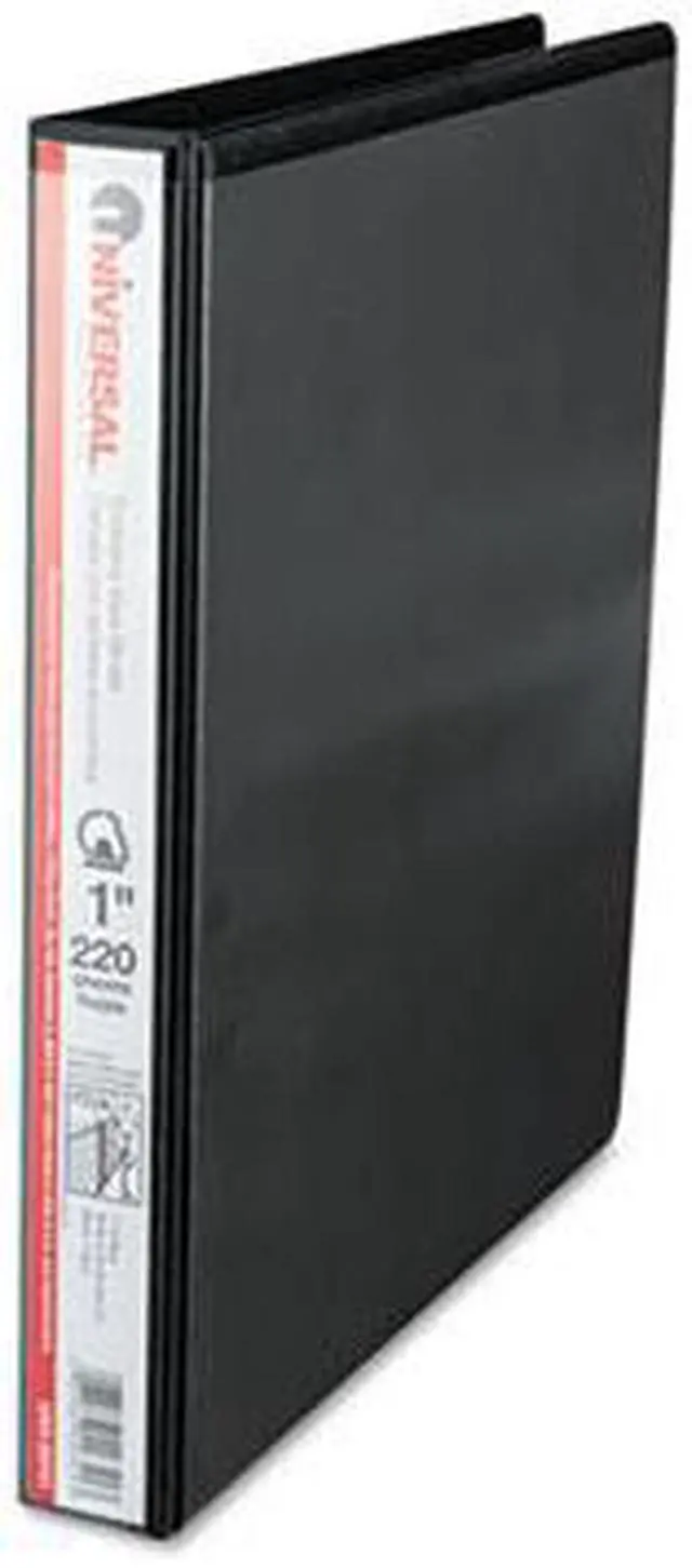 An exterior, matte-finish, transparent plastic overlay presents limitless customization options when you choose this binder. Say goodbye to page jamming and curling and hello to smooth page turning with this binder's D-Ring mechanism. D-Ring design means you can store 25% more documents in this binder than a comparable one fitted with round rings. Open and close triggers effortlessly for fast access to binder contents. Identify the material you need fast when you spot this binder's handy spine label. Front cover folds back to create a compact, rigid "mobile desktop" for note-taking on-the-fly. Capacity Range [Max]: 1"; Sheet Capacity: 220; Color(s): Black.