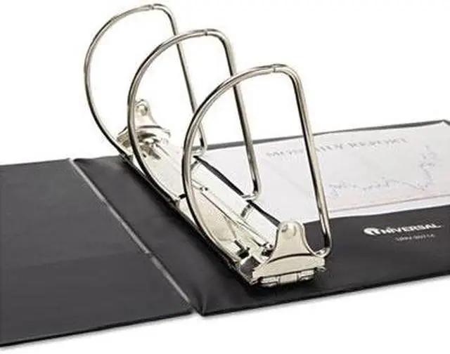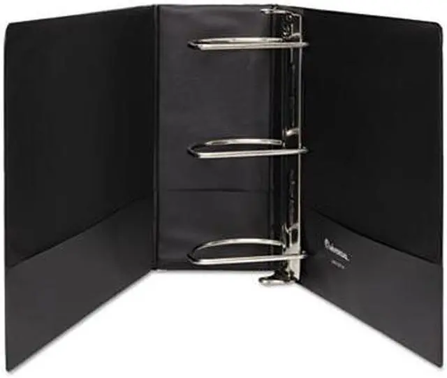 Say goodbye to page jamming and curling and hello to smooth page turning with this binder's D-Ring mechanism. D-Ring design means you can store 25% more documents in this binder than a comparable one fitted with round rings. Open and close triggers effortlessly for fast access to binder contents. Front cover folds back to create a compact, rigid "mobile desktop" for note-taking on-the-fly. Capacity Range [Max]: 5"; Sheet Capacity: 1,050; Color(s): Black.