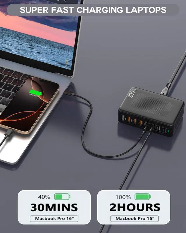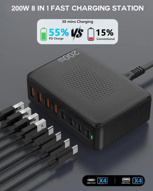 Upgraded 200W 8 IN 1 USB C Charging Station