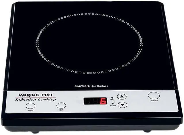 | Features | Efficient and easy to operate, the Waring Pro Induction Cooktop consumes up to 70% less energy than conventional burners, yet provides quick heat-up and faster cooking times. Induction technology for fast heat-up Uses up to 70% less energy than conventional cooktops LED timer display Easy-touch controls: On/Off, 8 heat settings, 150-minute timer Elegant styling with smooth glass top Heat stops automatically 30 seconds after pot or pan is removed Safe - no flame, no exhaust gas Even heating - no hot spots For use with induction-ready cookware |