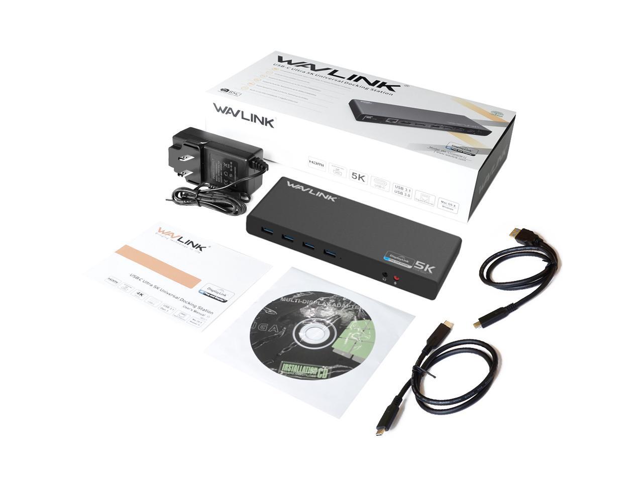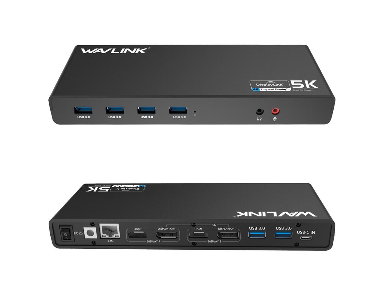 Wavlink Dual 4K Display Laptop Docking Station Single 5K/Dual 4K @60Hz USB 3.0 and USB-C Dual Monitor Docking Station With 2 x HDMI, 2 DP, Gigabit Ethernet, 6 x USB 3.0, Audio, Mic, For Windows/Mac