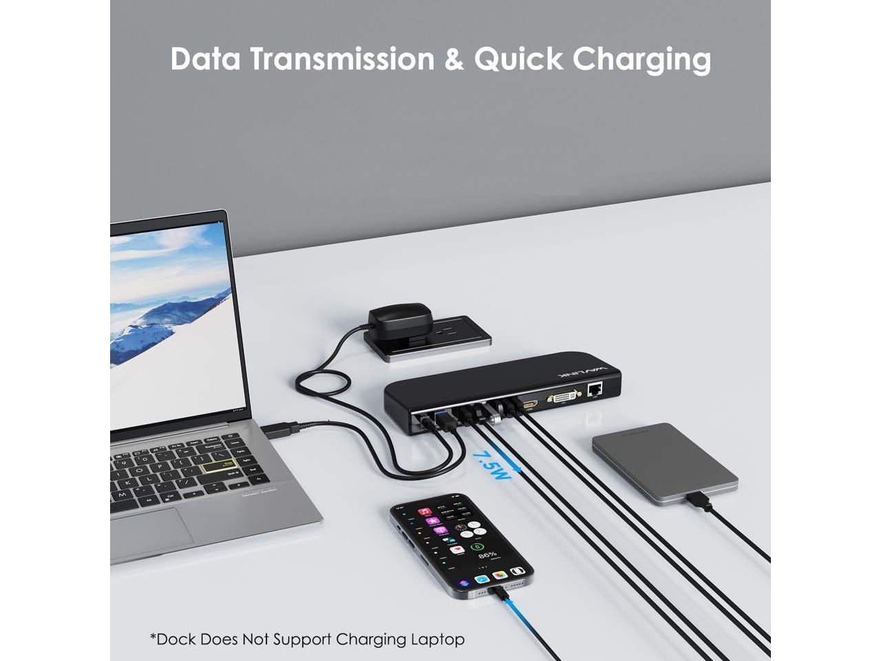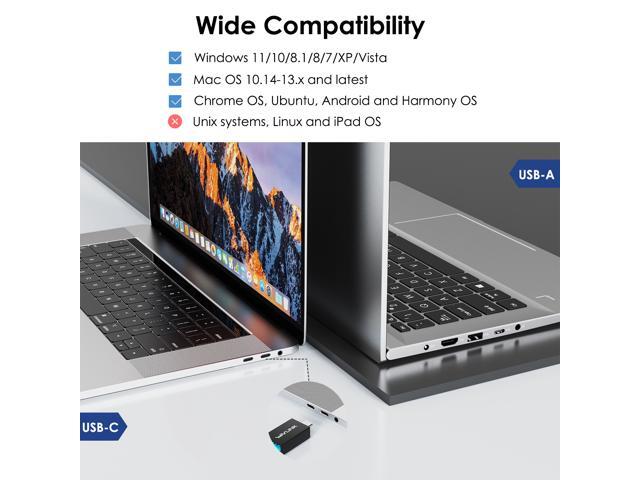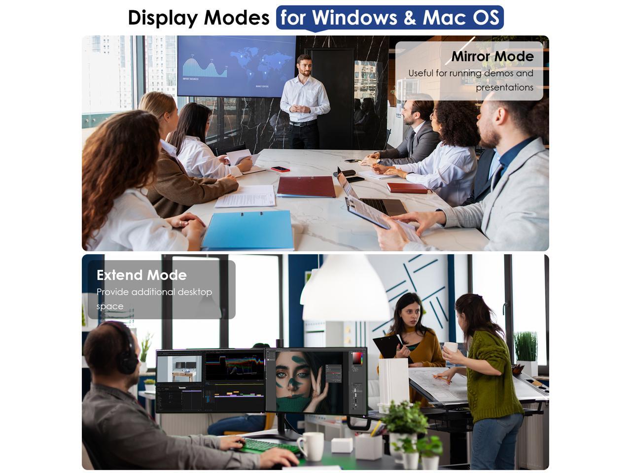 Compatible with Windows11, 10, 8, 8.1, 7, MacOS 10.14-13.X and latest, Ubuntu 20.04, 22.04, ChromeOS, Android 5 (Lollipop) onwards with USB OTG mode. Plug and play driver installation via Windows Update. This universal docking station offers broad compatibility with various laptops and devices, making it an ideal choice for remote work, presentations, and more
