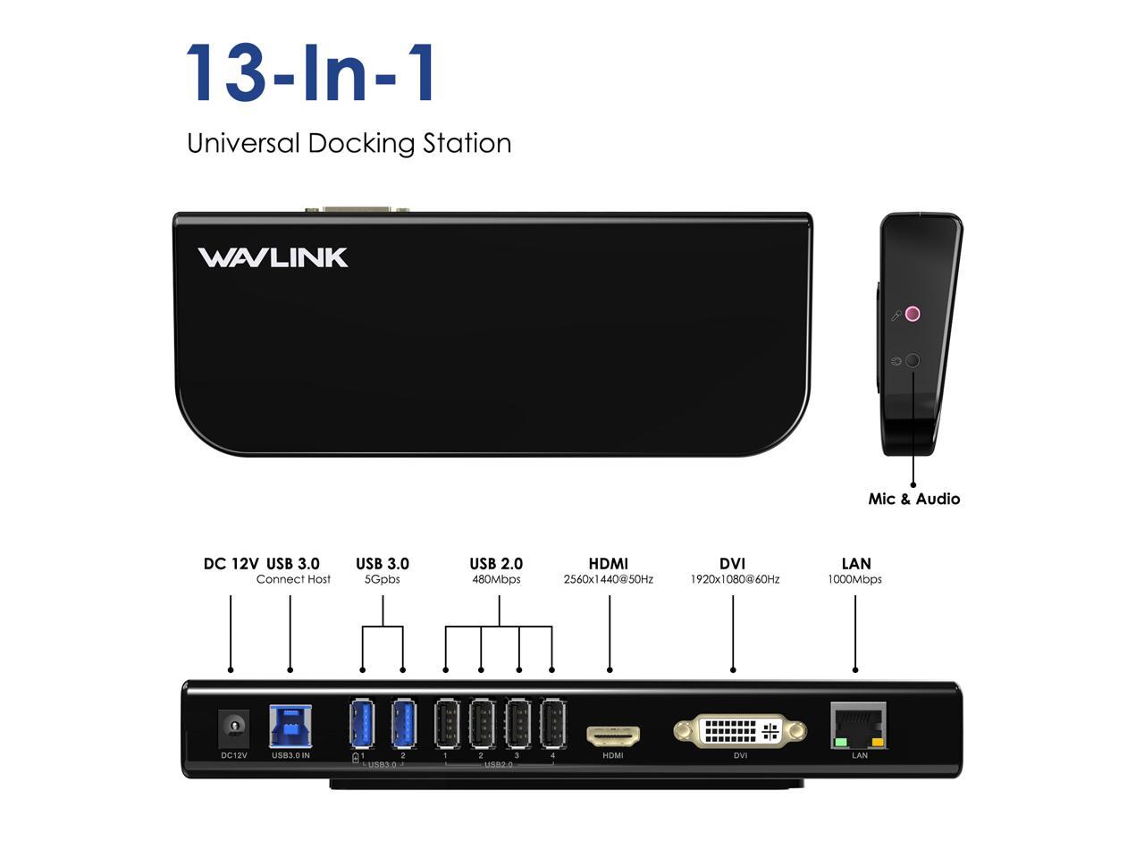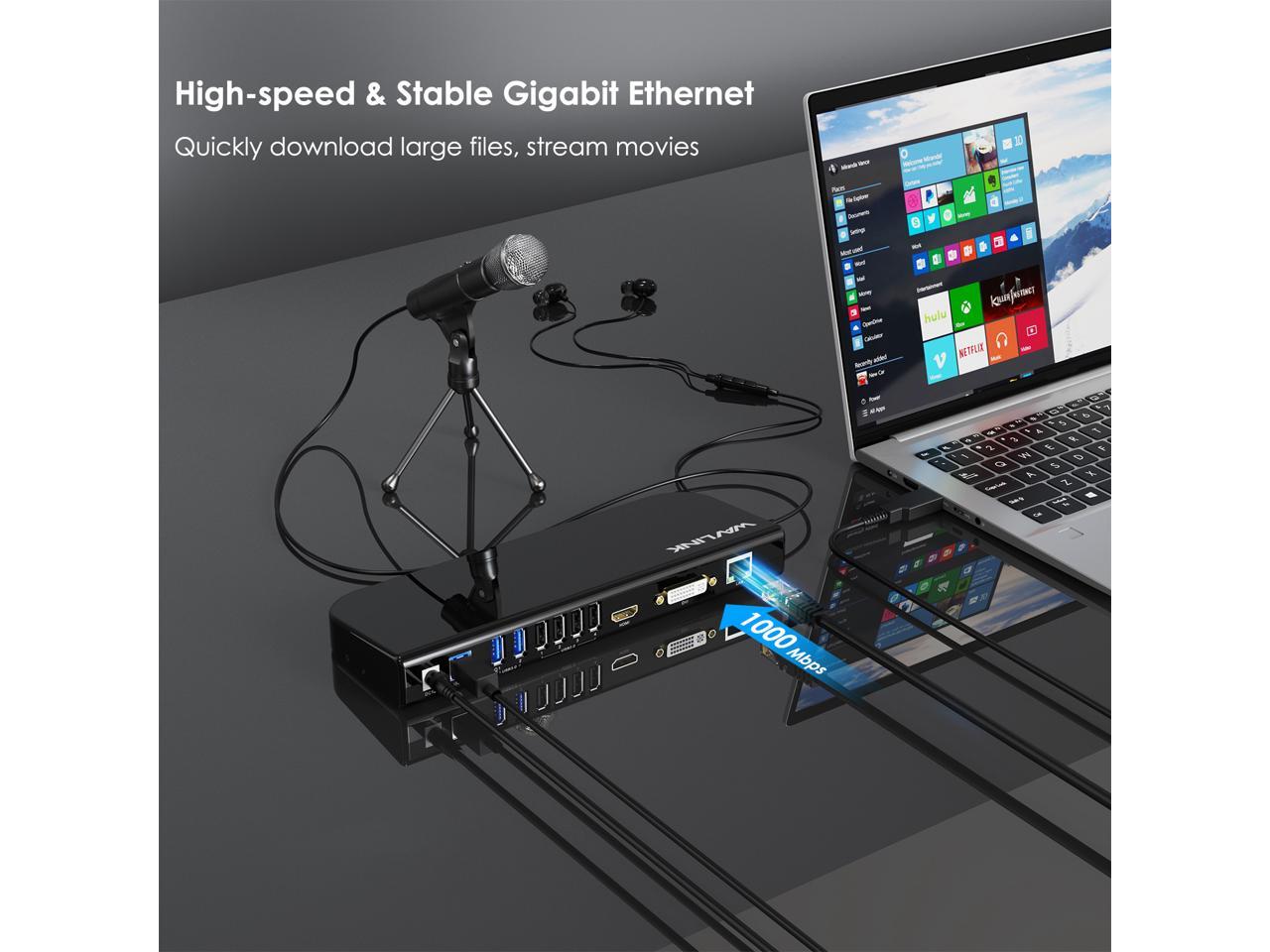 Wavlink USB 3.0 Universal Laptop Docking Station Dual Monitors DisplayLink Dock with HDMI/DVI/VGA, Gigabit Ethernet, 6 USB Ports, Audio for M1 M2 Mac and Windows, MacOS, ChromeOS, Ubuntu 20.04, 22.04