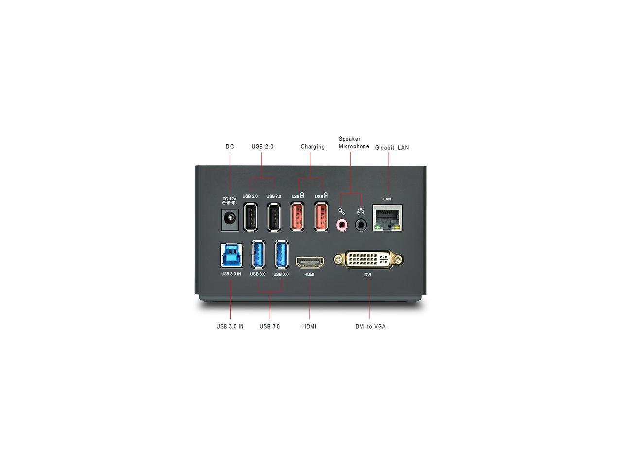 - A single USB 3.0 port from your laptop expands to 13 ports! HDMI and DVI / VGA dual video display, gigabit Ethernet port, 2 x red USB charging port up to 2.4A, 2x USB-A 3.0 and USB 2.0 ports, audio input/output, 48 Watt Power Adapter. Supporting hot-swapped and USB over-current protection.