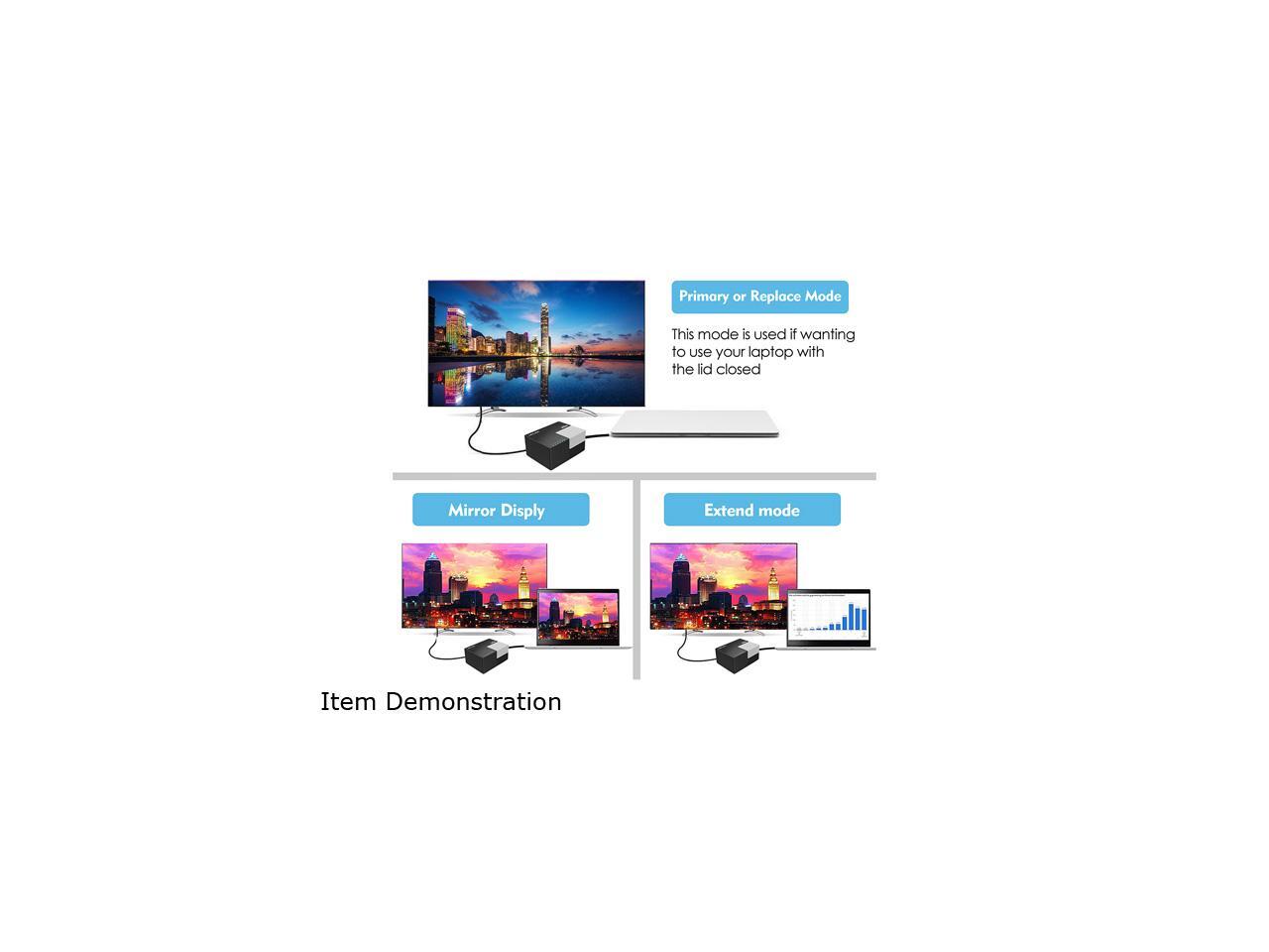 - Dock built in dual screen support through 1080P HDMI and DVI ports, HDMI port supports resolutions up to 2560x1440 and DVI/VGA port supports display resolutions up to 2048x1152 / 1920x1200, if dual displays are connected, each will be limited to a maximum resolution of 1920x1200, DVI to VGA adapters are supplied for added flexibility, great for different home and office workspace applications.