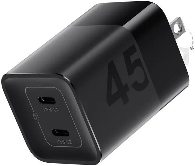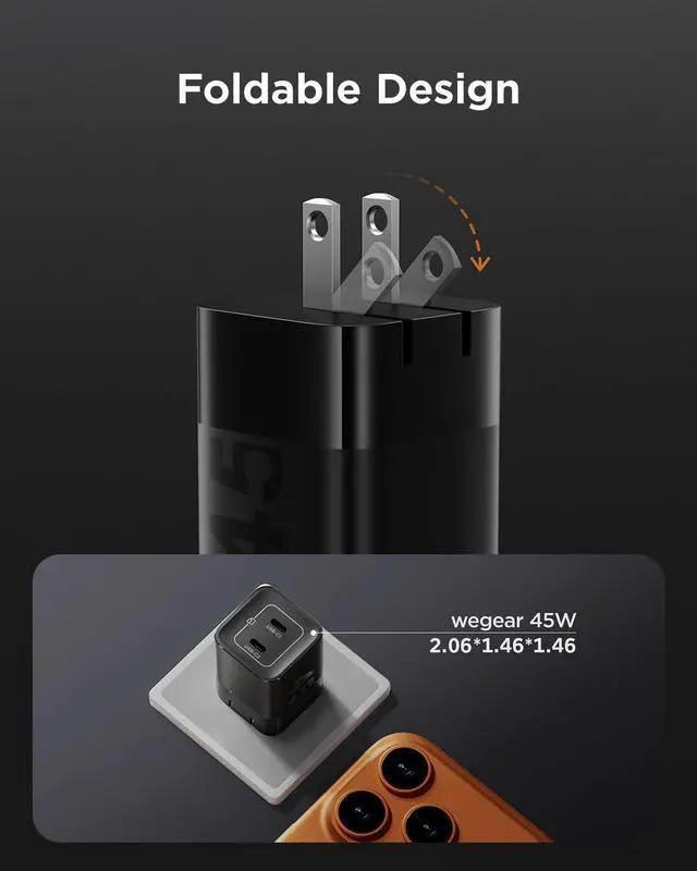 • Compact and Travel-Ready: Delivering 45W of power in a ultra-portable form factor measuring just 2.05x1.45x1.45 inches, this wall charger is perfect for on-the-go use with a universal 100-240V voltage range and foldable prongs for easy packing.