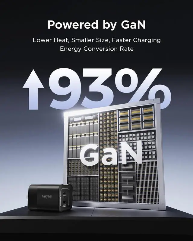 • GaN Charger: Advanced GaN technology boosts efficiency, reduces size by 36% compared to original 45W chargers, and includes multiple safety systems to prevent overheating, overcharging, and overvoltage.