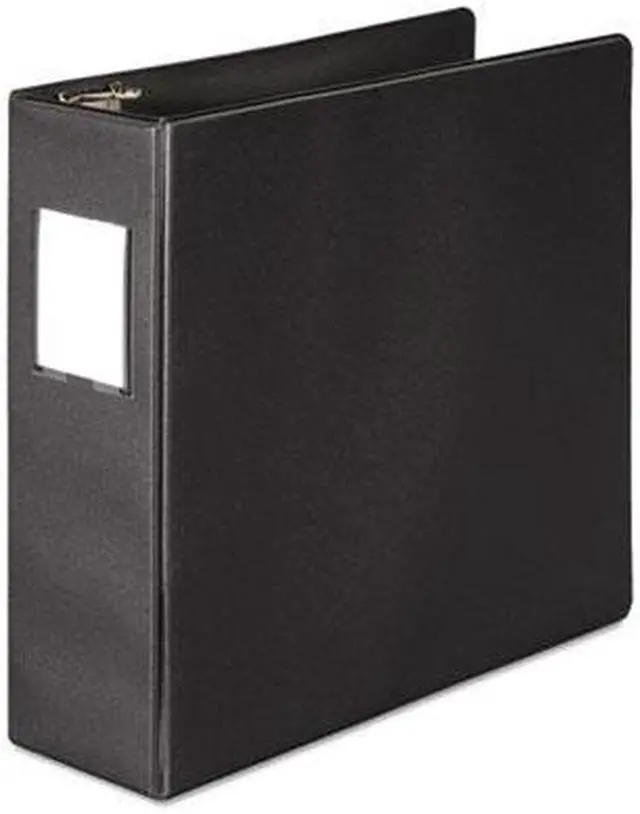 Open and close triggers offer easy access to documents. D-Rings hold 25% more sheets than round rings. Rings are mounted on the back cover allowing the front cover to fold back, creating a convenient writing surface. Two inside pockets for additional storage. Save time and energy, immediately identify contents with a glance at the label holder and insert on the spine. Capacity Range [Max]: 3"; Sheet Capacity: 600; Color(s): Black.