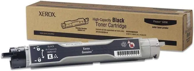 Toner cartridge is designed for use with Xerox Phaser 6350. Cartridge yields approximately 10,000 pages.