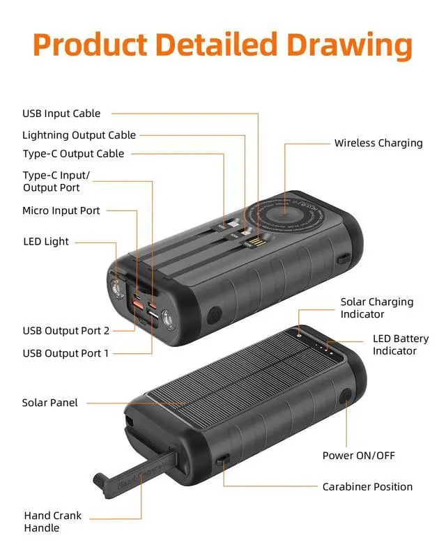 Please do not take solar as a primary charge source. Solar charging is a way for emergency use. The actual result may not be as positive as you expect for the small panel size, large capacity, and uncontrollable sunlight intensity.