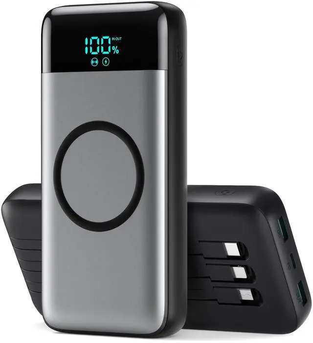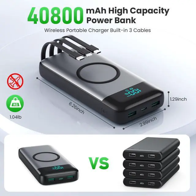 - 40800mAh Wireless Portable Charger with 3 Built-in Cables