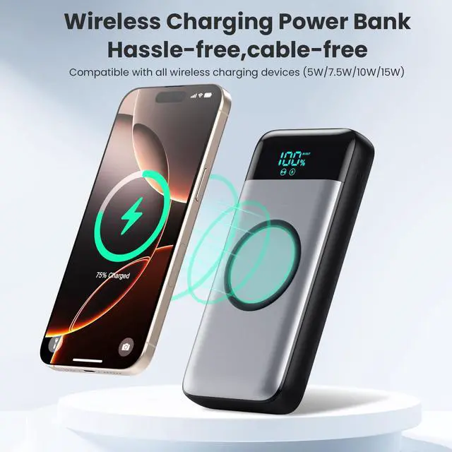Wireless Portable Charger Power Bank with 7 Output and 2 Inputs -- 2 USB C Ports Support Both Input and Output