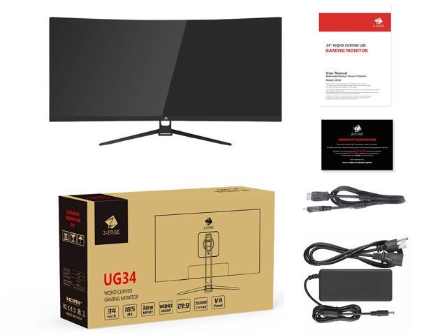 Z-EDGE 34" Ultra Wide 2K Curved Gaming Monitor, 21:9 UWQHD 3440x1440, 165Hz, 1ms, FreeSync Compatible, HDMI x2, DP x2, PBP & PIP Mode