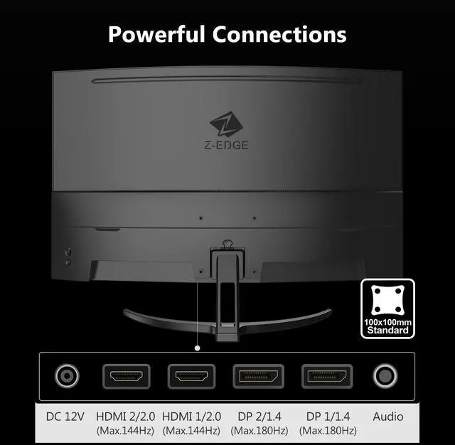Z-EDGE UG32 32" 2560x1440 2K QHD 180Hz (DP) 144Hz (HDMI) 1ms Curved Gaming Monitor, FreeSync, HDMI x2 , DP x2, Eye-Care Technology