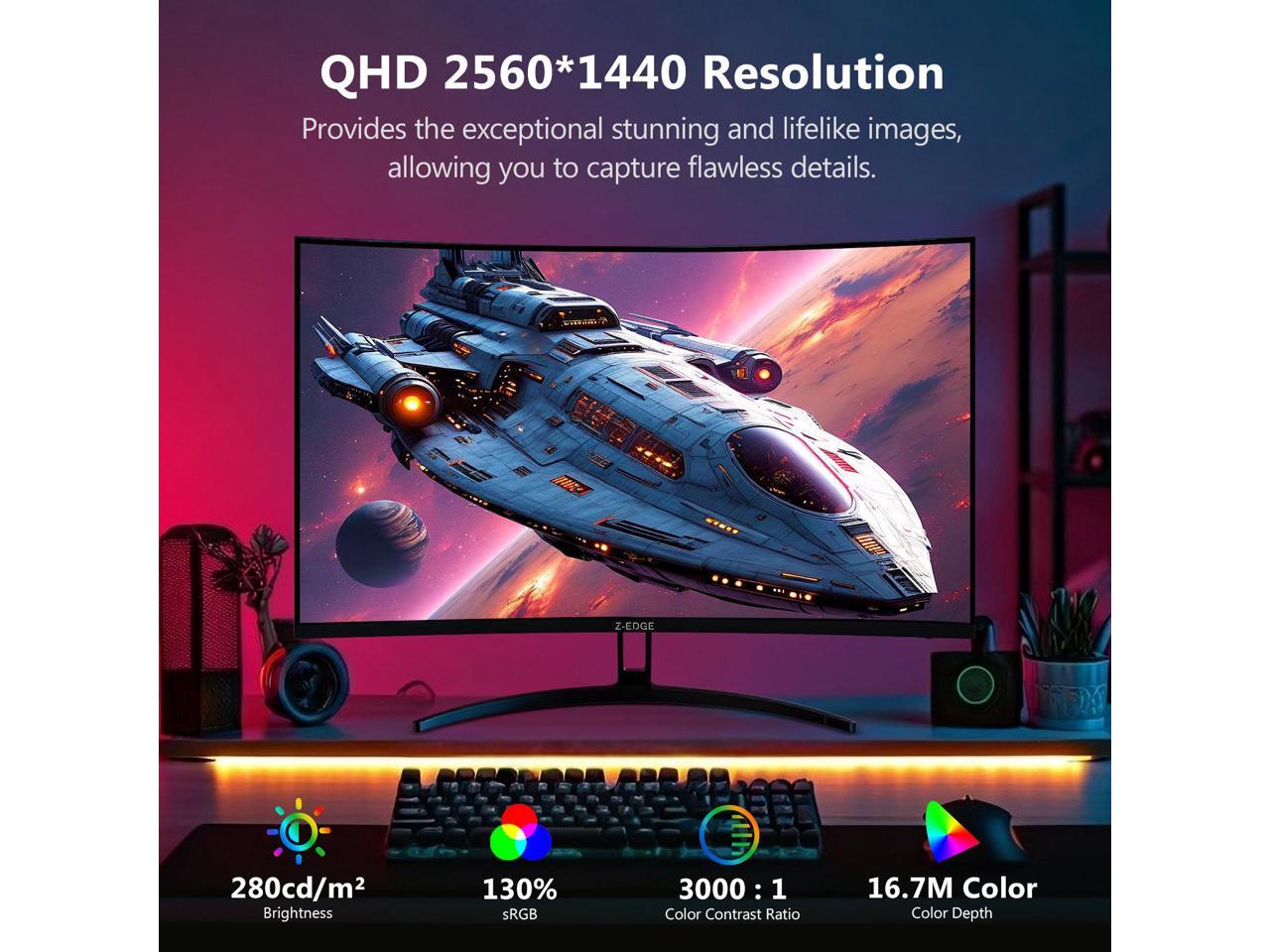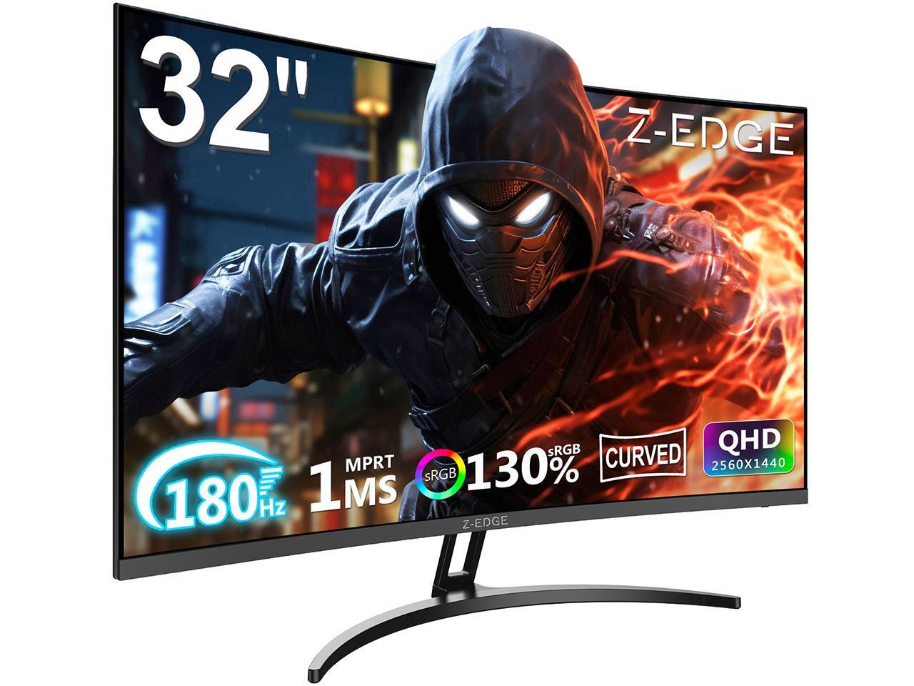 Z-EDGE UG32 32" 2560x1440 2K QHD 180Hz (DP) 144Hz (HDMI) 1ms Curved Gaming Monitor, FreeSync, HDMI x2 , DP x2, Eye-Care Technology