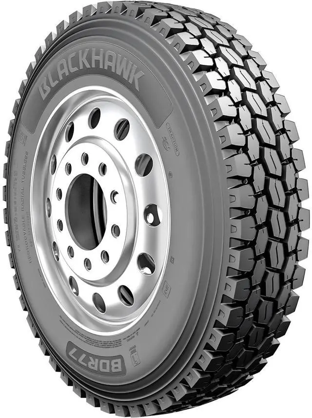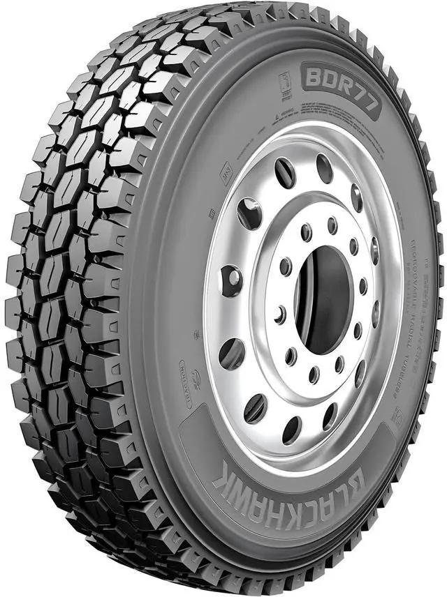 The Blackhawk BDR77 is a highway terrain, all season tire manufactured for commercial vehicles. This model was made for the vehicle's drive axle.