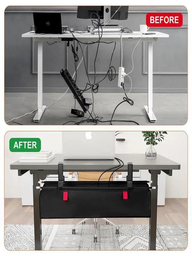 Premium Material: Crafted from flame-retardant 600D Oxford fabric, the CrsaSwivo under desk cable management bridge offers dust resistance and flame-retardant properties, ensuring it resists deformation or tearing