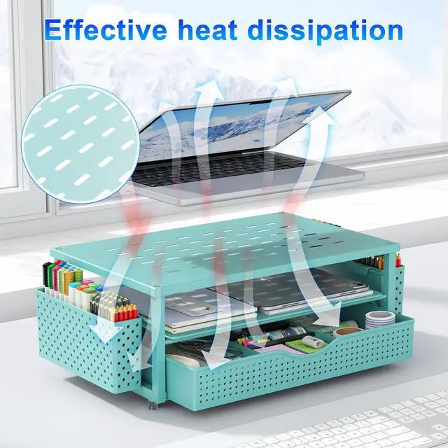 The display bracket elevates the display to a comfortable height to get a comfortable viewing experience to eliminate neck / back pain caused by incorrect viewing angles and improve work efficiency.
