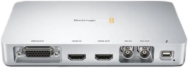 | Feature | The Blackmagic-Design UltraStudio Express is a capture and playback device that connects to a camera on one end and to a computer on the other. It captures saved footage or a live feed from the camera and passes it to the computer in formats ready to be edited. It can also up/down/cross convert the resolution of the footage as the footage is being passed to the computer. The third function of the Express is HDMI monitoring -- you can connect a top-quality HDMI monitor and monitor the footage you captured in the best resolution possible so to perform color correction in minute precision. UltraStudio Express features built-in SD/HD SDI, HDMI and Thunderbolt connections. It comes with two breakout cables via which it expands to composite, component, S-Video, RCA audio, AES/EBU audio on XLRs, sync input, genlock for bi and tri-level sync, and RS422 connections. Connection to a camera would be by SDI or HDMI where possible and to a computer by Thunderbolt. The formats the unit captures in are open standard DPX and QuickTime, which are compatible with all of the most common and popular software. UltraStudio Express can seamlessly be used with Final Cut Pro X, Final Cut Pro 7, Media Composer 6, Premiere Pro CS6, After Effects, Nuke, Photoshop, and DaVinci Resolve |