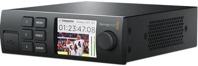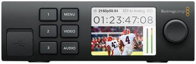 | Feature | The Teranex Mini Smart Panel, from Blackmagic Design, is designed to simply replace the existing front panel on any Teranex Mini Converter and instead provide a color LCD, spin dial, and six control buttons, including a menu control. You'll be able to adjust settings, browse menus, monitor conversions in progress, monitor audio levels, verify timecode, and verify the video standard being converted. The Smart Panel easily attaches in place of the standard front panel once the standard panel is taken off. |
