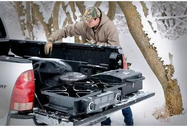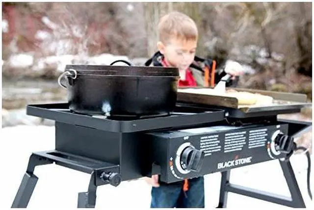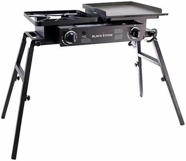 - Patented legs that adjust independently for uneven surfaces and can fold flat to cook anywhere