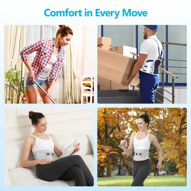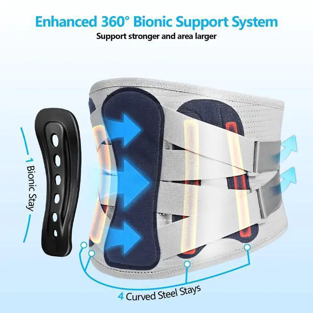 360° Reinforced SupportThis lumbar back support brace for men women adopt a new generation of ergonomic support system(3D Curved Lumbar Panel+ 4 Memory-aluminum stayswhich is 4X supportive than others.Curved Lumbar Panel is Replicates the spine's natural curvature to ensure exceptional back support at home, work, and lifting heavy .let you can keep in proper posture and great protect your back. Avoid injuries during gym exercising.