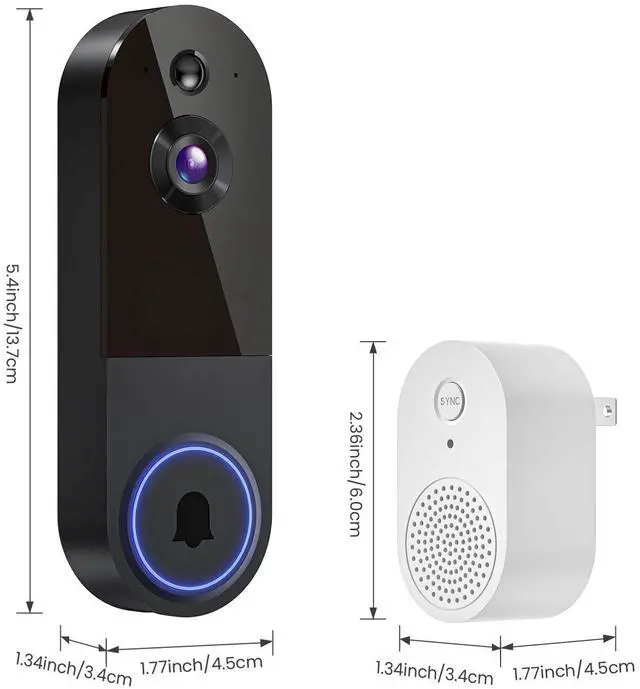 1080p Wireless Doorbell Camera with Receiver, AI Human Detection, 2-Way Audio, Night Vision, Cloud Storage, Real-Time Alerts