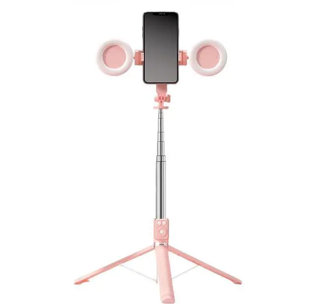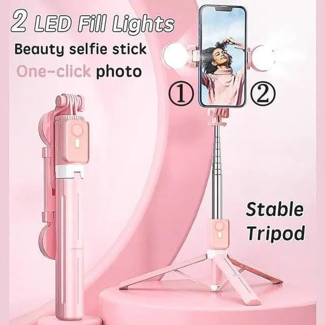 Selfie Stick Tripod with Light and Bluetooth Remote, 67" Extendable Mini Tripod Stand for iPhone Samsung Android, 6 in 1 Wireless Selfie Stick for TikTok YouTube Live Streaming(Pink)