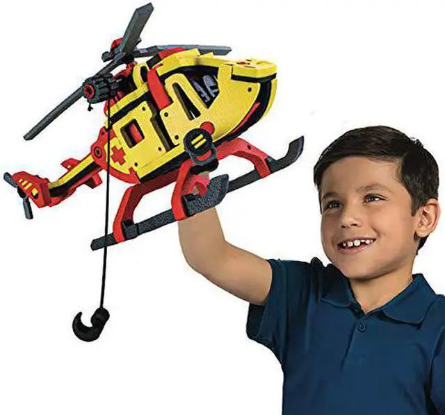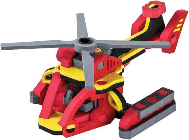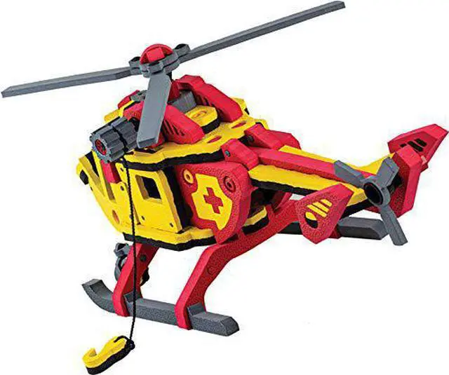 This set numbered BC-23002 contains 207 high-density foam pieces, 15 plastic connectors, and 6 plastic hub parts to build the 2 in 1 Rescue Helicopter set. The perfect construction toy for your child to create their own pretend play adventure.
